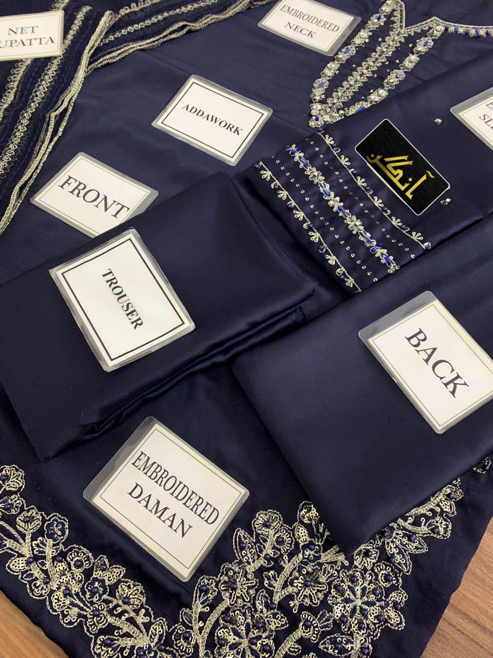 BRAMD:IZNIK shamooz silk embroidered hand embellished luxury unstitched 3pc✓